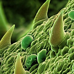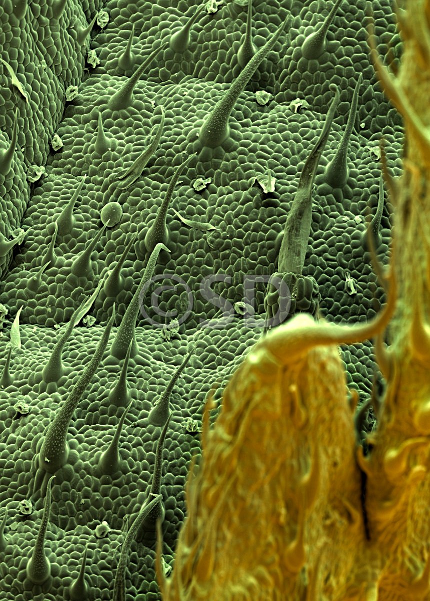 9Absinth Pinna of Absinthe with strong hairiness. All small hairs are build by only one cell. They cause the gray phenotype of this leaf. Field-of-View: 4208x3006 micron