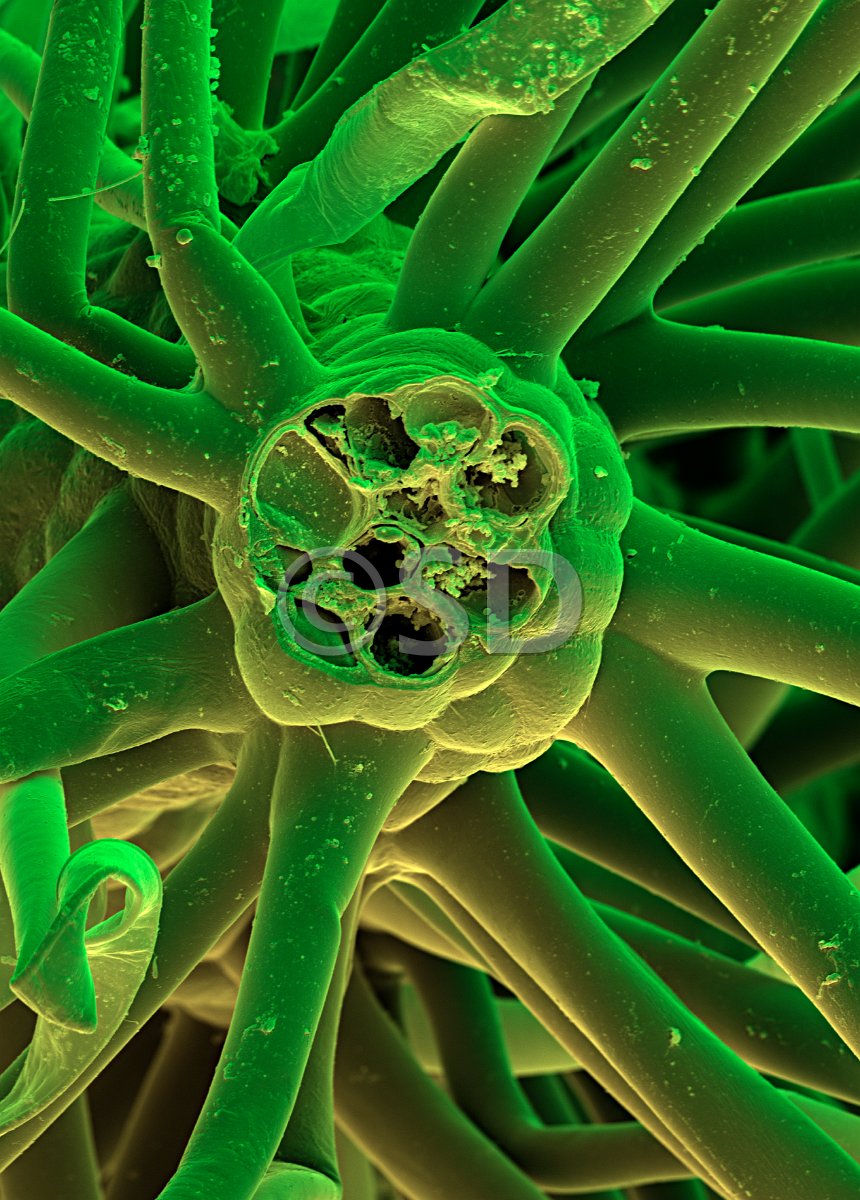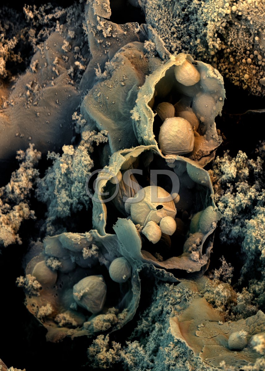 The scientific community and with it every researcher should be committed to sharing the aesthetics of the microworld with as many people as possible. This outreach to non-scientists is essential in helping communicate the importance of basic and applied research to the general public. An appreciation of the contribution of science to their every day lives is essential if the tacit support for funding of our research is to be maintained. In addition, the ability of an individual picture to inspire a child to inquire about a hitherto invisible world is an important first step in establishing future generations of researchers and microscopists. Although, data from scanning electron microscopes (SEMs) is usually shown using grayscale images. Colours can be added using additional detector signals and digital photo editing software. This procedure is widely accepted for communicating results on up-to-date research to newspapers, magazines and TV outside the scientific world and mostly comprise still shots of a specimen.