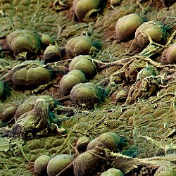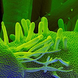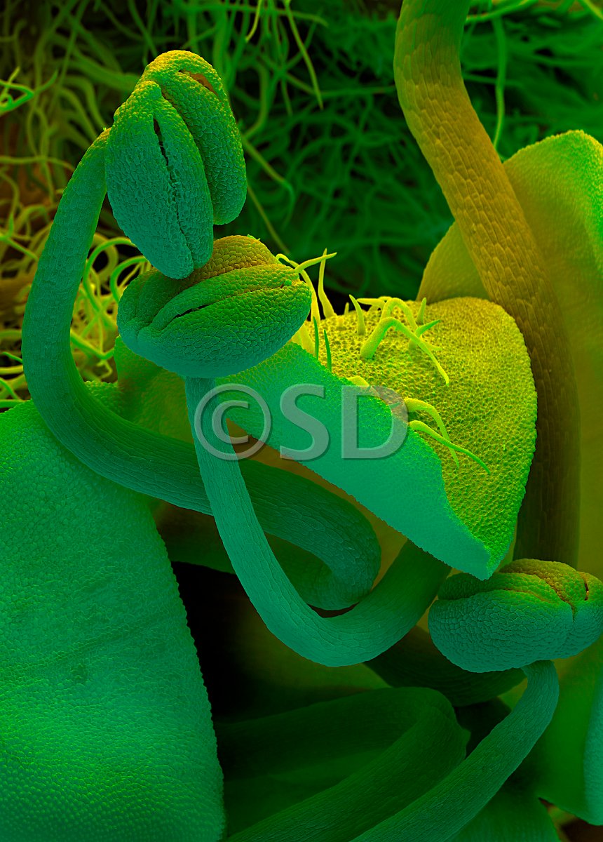 45Lovage The filaments and their pollen-bearing anthers (tips) together make up the stamens of a flowering plant. Field-of-View: 3112x3961 micron