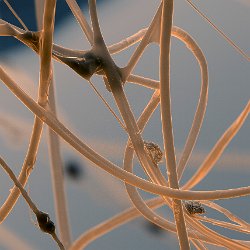 133Spider web Threats of a spider-web with parts of glue on it. Field-of-View: 320x448 micron